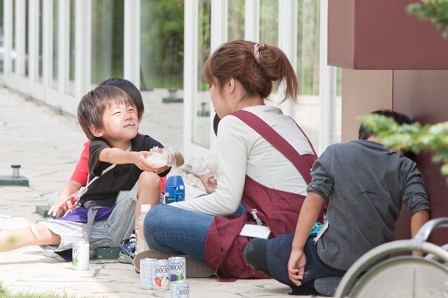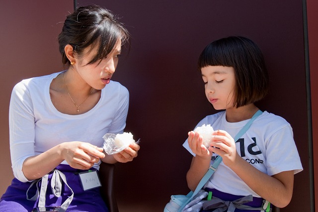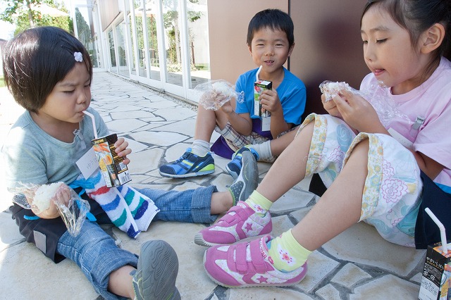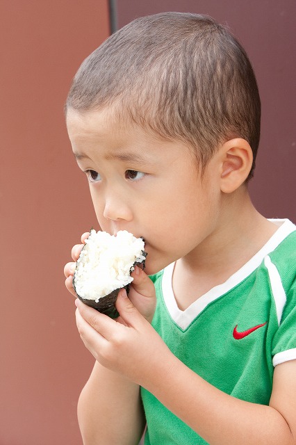 お昼の休憩時間は、こどもcafe恒例の「おにぎりのみ」。毎回こどもたちから苦情がないのがすごい…。 みんな、小さな手に持てないくらい大きなおにぎりを無心に(笑)食べてます。