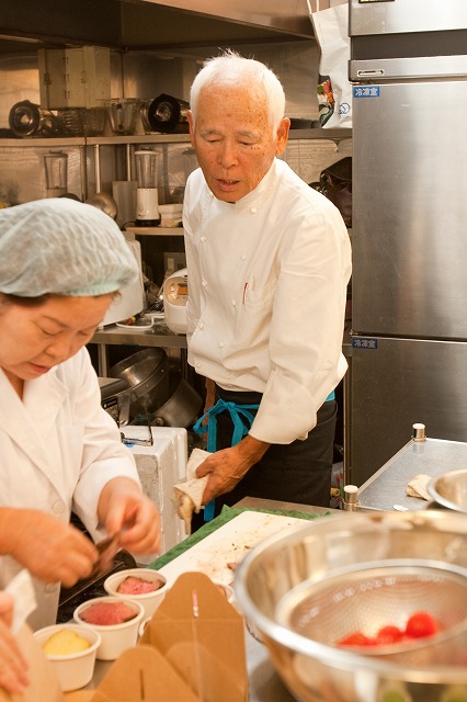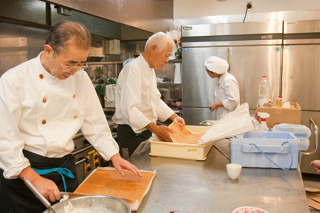 その頃、厨房では大忙し。こどもcafeには、たくさんの縁の下の力があります。 こどもシェフが「全部、自分でお料理した!」と思えるように、本物のシェフ達が下準備をしてくださっています。