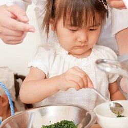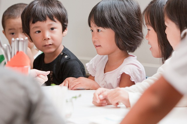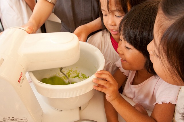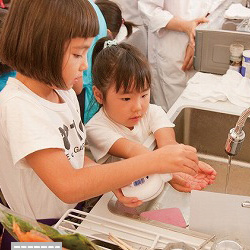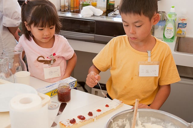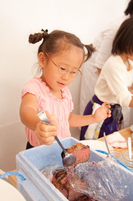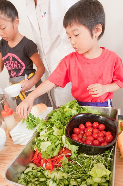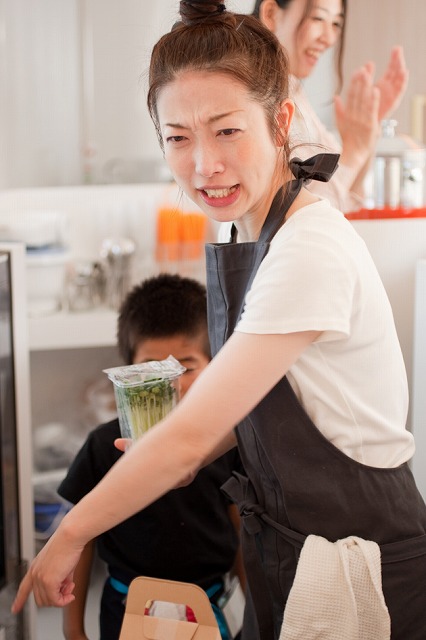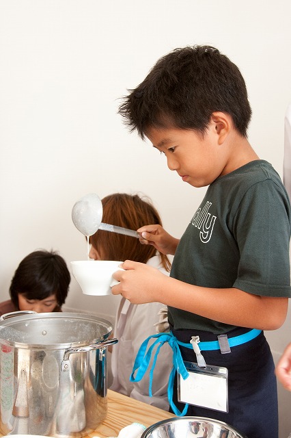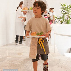 10:00 こどもシェフたち到着。 まずは、かよ先生よりご説明。 みんな真剣に聞いています。