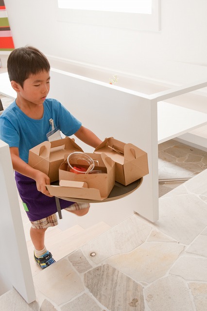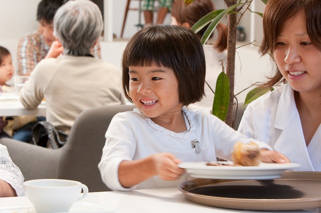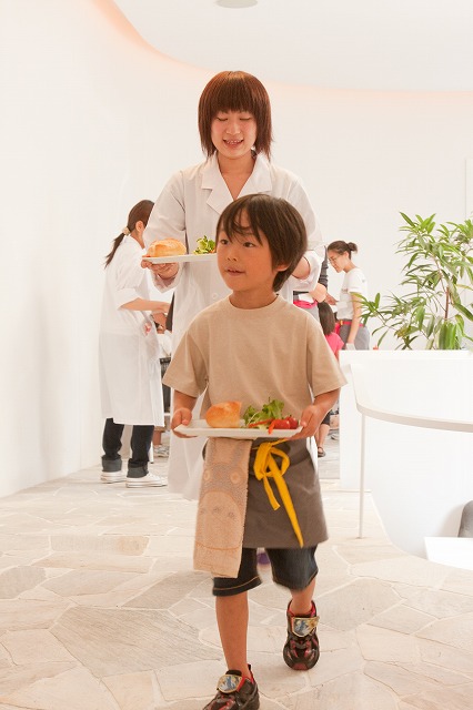11:00 こどもCafe OPEN。 ホール係がお出迎え。こどもシェフ はホール、テイクアウト、キッチン をローテーションします。