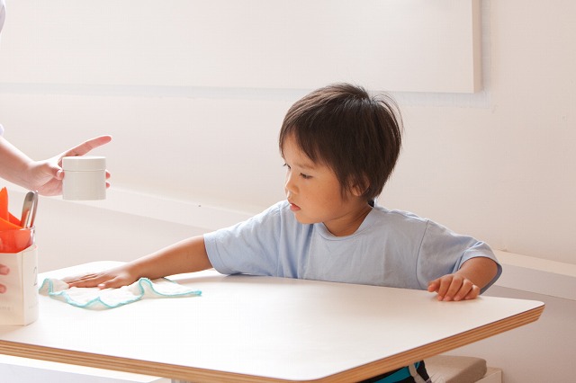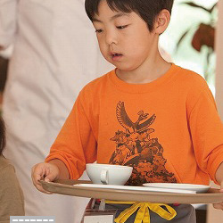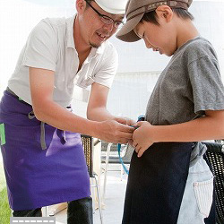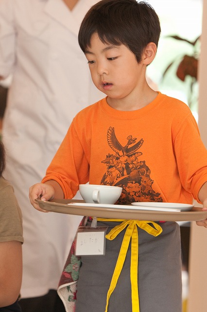 こどもcafeオリジナルサロン をつけて。(サロンは大人スタッ フとおそろいです。)